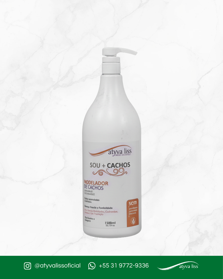 Modelador de Cachos (1,5 Litro): Creme finalizador sem enxágue de uso diário. Proporciona controle absoluto sobre o volume e o frizz, garantindo uma definição prolongada, maciez e flexibilidade aos cachos ao longo do dia.